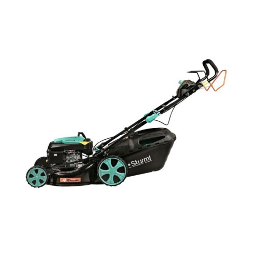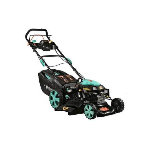 Газонокосилка бензиновая STURM PL4714SV самоходная 4 в 1 с мощным двигателем 5 л. с. и изменяемой высотой скашивания предназначена для срезания и сбора травы на изменяющемся рельефе. .Газонокосилка работает в четырех режимах: боковой выброс травы, задний выброс травы, режим мульчирования и сбор травы с травосборник. Большие задние колеса обеспечивают газонокосилке превосходную маневренность. Установленная трансмиссия от мирового бренда GENERAL TRANSMISSIONS обеспечивает самостоятельный привод задних колес и снимает физическую нагрузку с оператора. Управление оборотами двигателя осуществляется с помощью удобного рычага на верхней рукоятке, позволяя настраивать нужную скорость движения. Центральная регулировка высоты кошения — быстрая и удобная настройка с помощью одного рычага облегчает обработку газонов с изменяющимся рельефом. Ударопрочный вместительный 60-литровый травосборник создает максимальное удобство в работе и экономит время. []Ширина 500 мм []Высота 450 мм []Глубина 1 200 мм []Вес 35.42 кг