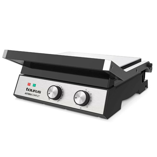 Гриль Taurus Asteria Complet мощностью 2000 Вт оснащен нагревательным элементом закрытого типа, расположенным с 2 сторон. Размер панели составляет 29x23 см. Предусмотрены индикаторы нагрева и работы. Ручка устройства защищена от нагревания.