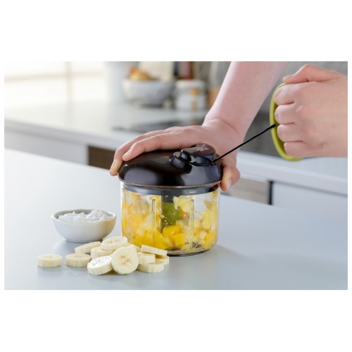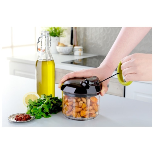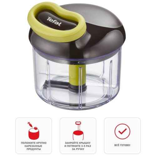 Приготовление вкусных блюд в домашних условиях стало еще проще с Tefal 5 Second Chopper, самым простым и быстрым способом нарезать любой вид пищи - до нужного размера! Независимые лезвия из нержавеющей стали, от лука, зелени и орехов до гуакамоле и хумуса, обеспечивают легкий результат нарезки! Просто прикрепите лезвие, добавьте ингредиент, закройте крышку и потяните за ручку... Чем больше вы тянете, тем мельче нарезаете!
