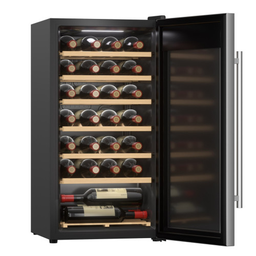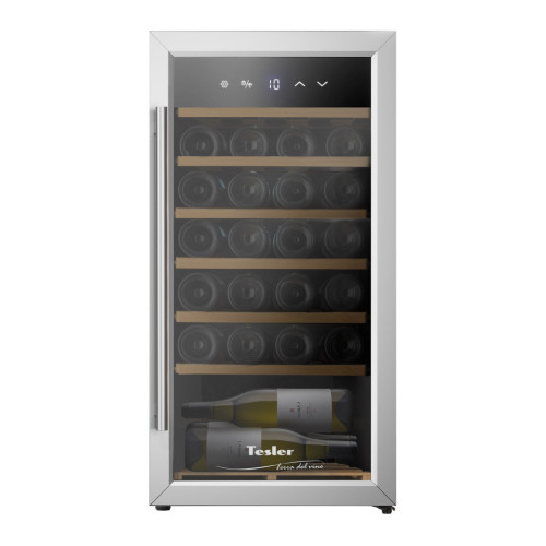 Tesler CWC-283 – компрессорный отдельностоящий винный шкаф на 27 бутылок, который станет незаменимым помощником для хранения и демонстрации вашей коллекции вина. Преимуществом данной модели является наличие компрессора, который использует хладагент для охлаждения внутреннего пространства, что обеспечивает стабильное поддержание температуры. Температура внутри шкафа не зависит от температуры окружающей среды. Диапазон поддерживаемой температуры от 5 °C до 18°C помогает создать идеальные условия для хранения вина. Вместимость шкафа составляет 27 бутылок – оптимальное количество для домашнего использования или небольшого бара. Внутри предусмотрена белая подсветка для равномерного освещения всего объёма. Устройство оснащено LED дисплеем и удобным сенсорным управлением. Функция блокировки панели управления обеспечивает защиту настроек и дополнительную безопасность. Шкаф оборудован съёмными полками из натурального дерева, которые надежно фиксируют бутылки и защищают их от повреждений. Кроме того, на дне шкафа имеется дополнительная полка, вмещающая 3 бутылки. Дверца из двухслойного закалённого стекла с зеркальной поверхностью защитит напитки от воздействия света. При этом стекло позволяет увидеть этикетки, не открывая дверцу, для этого достаточно просто включить подсветку. Бесшовный уплотнитель дверцы изолирует бутылки от воздействия окружающей среды. Рамка из нержавеющей стали придает устройству стильный и современный вид, а удобная ручка делает использование шкафа более комфортным. Благодаря элегантному дизайну винный шкаф Tesler легко впишется в интерьер городской квартиры, загородного дома или офиса. Особенности: * Диапазон поддерживаемой температуры – от 5°C до 18 °C, что позволяет хранить любые сорта вин без ущерба для их вкуса. * 6 съемных деревянных полок позволяют разместить до 27 бутылок. * Оборудован удобной двойной дверцей, зеркальная поверхность которой защитит содержимое шкафа от попадания света. * Стабильное поддержание температуры благодаря мощному компрессору. * Отзывчивое и понятное сенсорное управление с функцией блокировки дисплея сделает взаимодействие с прибором максимально удобным. * Бесшовный уплотнитель дверцы изолирует бутылки от воздействия окружающей среды.
