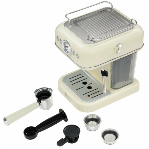 Рожковая кофеварка Tesler ECM-245 станет прекрасным выбором для ценителей кофе, и позволяет приготовить ароматный эспрессо, насыщенный капучино или бархатистый латте. Вечный ретро-стиль, современные технологии и внимание к деталям объединяются, чтобы создать настоящее произведение искусства в мире кофе. Панель управления с отображением температуры воды в реальном времени позволяет контролировать процесс приготовления. Модель универсальна, и подходит как для молотого кофе, так и для чалдов E.S.E. или капсул Nespresso, предоставляя широкий спектр выбора вариантов. Металлический рожок хорошо прогревает напиток, а сам кофе получается насыщенным и густым. Функция вспенивания молока позволит приготовить капучино или латте с нежной молочной пенкой, а регулятор интенсивности подачи пара поможет настроить его количество для различных рецептов кофе. Мощность кофеварки составляет 950 Вт, а давление достигает 20 бар, что гарантирует насыщенный вкус и аромат каждой приготовленной чашки. Помпа ULKA обеспечивают более стабильное и точное давление воды, что важно для правильного экстрагирования кофе и получения качественного напитка. Кофеварка оснащена литым алюминиевым бойлером, который быстро нагревается и долго сохраняет тепло. Прозрачный резервуар для воды объемом 1,2 литра обеспечивает удобство наполнения благодаря разметке уровня воды, и позволяет видеть, сколько воды осталось внутри. В случае необходимости контейнер легко снимается для очистки. Подставка для подогрева чашек позволяет поддерживать правильную температуру напитков. Простое механическое управление с четырьмя кнопками делает работу с кофеваркой интуитивно понятной. Система контроля давления и защита от перегрева гарантируют безопасность использования и долгий срок службы кофемашины. Комплектация: кофеварка, фильтр для 1 чашки - 1 шт, фильтр для 2 чашек - 1 шт, адаптер для капсул Nespresso, рожок (держатель фильтра), мерная ложка - темпер - 1 шт, руководство по эксплуатации.