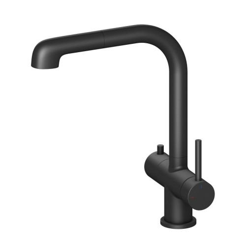 Смеситель для кухни с подключением фильтра и выдвижной лейкой Saona 2346/03FL выполнен из латуни А класса в черном цвете. Коллекция: Saona. Управление: огднорычажное. Тип излива: поворотный. Диаметр керамического картриджа: 35 мм.