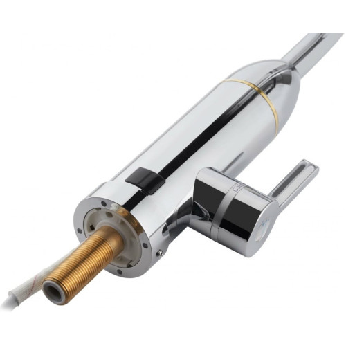Кран-водонагреватель проточного типа Unipump (Юнипамп) BEF-016-03 - это бытовой прибор, предназначенный для быстрого нагрева холодной воды. Модель выполнена в виде стильного смесителя, со встроенным дисплеем для отображения температуры воды. С помощью ручки регулируется поток воды и степень нагрева. Особенности и преимущества: * Материалы – пластик с хромированным покрытием * Модель оснащена дисплеем, отображающим температуру воды * Минимальное давление в магистрали холодной воды – 0,04 МПа (0,4 bar) * Максимальное давление в магистрали холодной воды – 0,5 МПа (5 bar) * Максимальная температура нагрева воды – +60°С * Присоединительный размер – 1/2