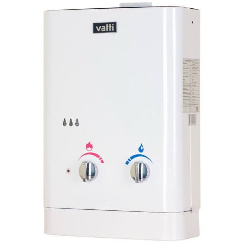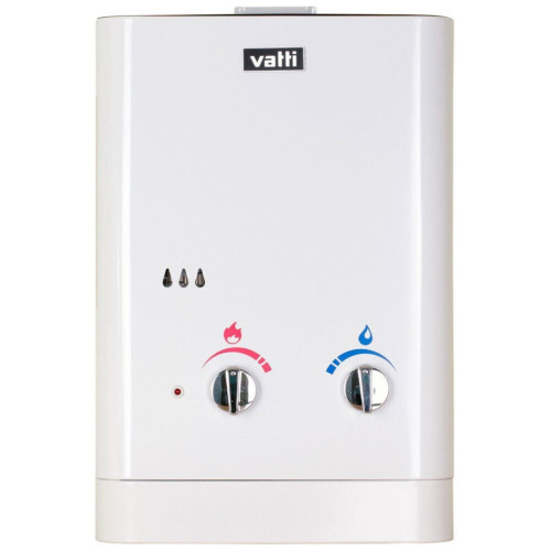 Водонагреватель проточный Vatti MR11-N разработан для непосредственного нагрева воды для бытовых нужд в режиме реального времени. Удобство эксплуатации обеспечивается за счёт непосредственного розжига газовой горелки при открытии крана горячей воды, а многоступенчатая система мониторинга работы водонагревателя гарантирует полную безопасность его эксплуатации. Водонагреватель имеет малые габаритные размеры и не требует подключения к дымоходу (при наличии условий и соблюдении правил монтажа для данного вида газоиспользующего оборудования). Устройство работает от природного и сжиженного газа. Расход природного газа - 1,18 куб.м/ч. Расход сжиженного газа - 0,92 кг/ч.