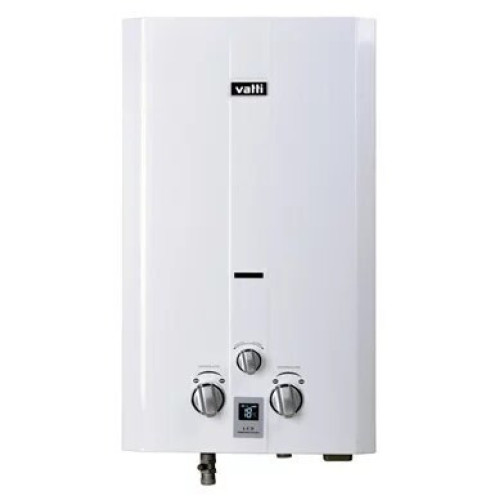 Газовый проточный водонагреватель Vatti MR24-W. Разработан для непосредственного нагрева воды для бытовых нужд в режиме реального времени. Удобство эксплуатации обеспечивается за счёт непосредственного розжига газовой горелки при открытии крана горячей воды, а многоступенчатая система мониторинга работы водонагревателя гарантирует полную безопасность его эксплуатации. Водонагреватель оснащён датчиком температуры горячей воды, и инверсным цифровым жидкокристаллическим дисплеем. Имеет переключатель режима «зима-лето» и обеспечивает повышенную производительность при приготовлении горячей воды.
