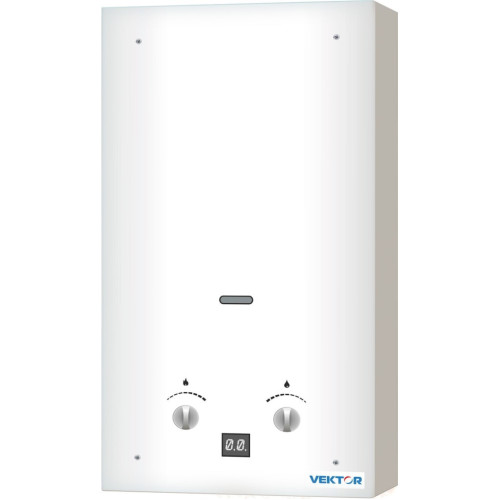 Водонагреватель настенный газовый VEKTOR 10 с механическим управлением и с классическим дизайном белого цвета. Камера сгорания с водяным охлаждением. Тип розжига у данной модели автоматический от батарейки. Теплообменик выполнен из такого материала как медь.Макс. расход природного/сжиженного газа: 1,38/0,65