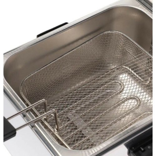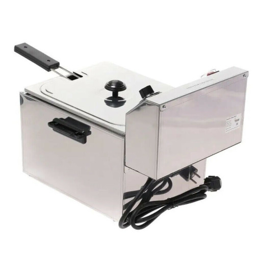 Профессиональная настольная фритюрница VIATTO VA-DF8 с ванной объемом 8 литров и мощностью 3,25 кВт создана для быстрого приготовления во фритюре овощей, мяса, курицы, рыбы и морепродуктов, сыра, грибов и других вкусных блюд. Из-за короткого воздействия высокой температуры на продукт со всех сторон, блюда, приготовленные во фритюрнице полезнее, чем приготовленные на сковороде и содержат меньше масла. Фритюрница полностью разборная, что удобно для использования и ухода, все детали снимаются и легко моются. Удобная панель управления: термостат обеспечивает плавную регулировку температуры от 110 С до 190 С. Индикатор включения загорается при включении прибора в сеть (220 V). Встроенная защита от перегрева сработает при включении прибора без масла.