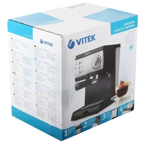 Для самых требовательных гурманов была создана кофеварка Vitek VT-1511 с максимальной мощностью 1050 Вт. Прибор оснащен итальянской помпой Ulka, которая обеспечивает давление 15 бар и, таким образом, гарантирует приготовление по-настоящему вкусных и ароматных напитков. Любите капучино, латте и горячий шоколад? Кофеварка Vitek VT-1511 отлично справится с их приготовлением, благодаря специальному устройству подачи пара для взбивания нежной молочной пенки. Съемный резервуар для воды объемом 1,5 л, а также съемный поддон для капель обеспечивают особое удобство в использовании прибора. Кроме того, в устройстве предусмотрена возможность приготовления кофе как в стандартной маленькой чашке, так и в высокой. Любители эспрессо по достоинству оценят функцию подогрева чашки на специальной платформе. Побалуйте себя: купите кофеварку Vitek VT-1511 и наслаждайтесь вкусом любимых напитков.