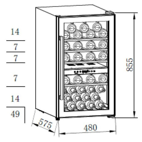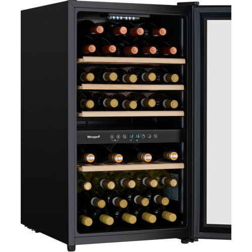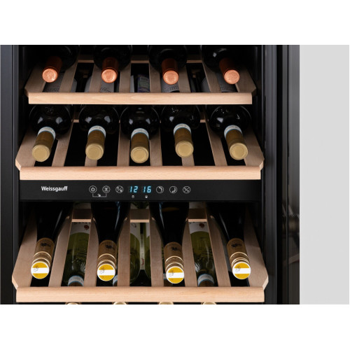 Weissgauff представляет вашему вниманию отдельностоящий винный холодильник с возможностью установки под столешницу, обладающий вместительностью 49 бутылок, полностью электронным управлением и чувствительной настройкой температурного режима! Серия PREMIUM создана Weissgauff, чтобы удовлетворить самые взыскательные запросы наших наиболее требовательных клиентов. Бесспорно высшее качество, расширенная функциональность и богатая комплектация, улучшенные показатели и доведенный до совершенства дизайн – все это вы найдете в моделях данной серии, воплощающих самые смелые мечты в реальность. Прикоснитесь к поистине легендарному уровню исполнения бытовой техники Weissgauff с моделями PREMIUM! Габариты устройства 480 х 575 х 855 мм - это оптимальные размеры, при выборе которых инженеры Weissgauff руководствовались целью создать для вас максимально вместительный и функциональный винный холодильник, который при этом окажется удобен в установке и не будет занимать лишнее место на вашей кухне! Две независимые зоны с раздельной настройкой температуры - предоставят возможность организовать индивидуальный климат для одновременного хранения различных типов вин в холодильнике! Вместимость 49 бутылок позволит вам расположить в камере данного устройства достаточный запас вина, который станет приятным дополнением к вашему столу в течение продолжительного времени! С данным устройством от Weissgauff у вас больше никогда не возникнет ситуации, когда запас вина в доме подошел к концу, ведь теперь размещать и хранить его можно прямо на вашей кухне! Дизайн модели, выполненный в черном цвете, станет финальным штрихом в совершенстве великолепного облика этой модели. Каждый раз, заходя на кухню, вы будете чувствовать, что этот винный холодильник - не просто функциональное устройство, но и настоящее украшение в интерьере вашей кухни! Полки, выполненные из дерева, подчеркнут премиальность и безупречный стиль этого винного холодильника, предоставляя по-настоящему королевские условия для хранения ваших вин! Диапазон температур 5-22°С обеспечит достойные условия для хранения ваших вин, предлагая возможность создавать и поддерживать оптимальный температурный режим в зависимости от сорта и типа помещенного в камеру вина! Внутреннее освещение камеры, активирующееся при нажатии специальной кнопки на панели управления, наполнит ваш винный холодильник мягким и чистым светом, позволяющим легко увидеть все расположенные в нем бутылки с вином! Полностью электронное управление - будет не только интуитивно понятным практически любому пользователю, но и отражает всю современность и технологичность подходов Weissgauff к созданию качественной и современной бытовой техники! Блокировка от детей защитит ваш винный холодильник от незапланированного случайного изменения настроек панели управления! Перенавешиваемая дверь позволит вам самостоятельно выбрать, в какую сторону будет осуществляться открывание устройства, что особенно важно при планировании его размещения!