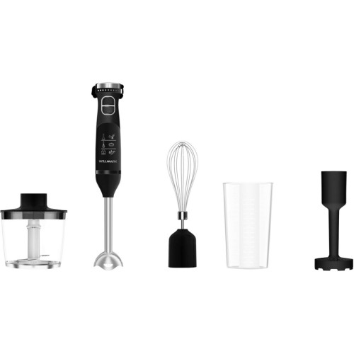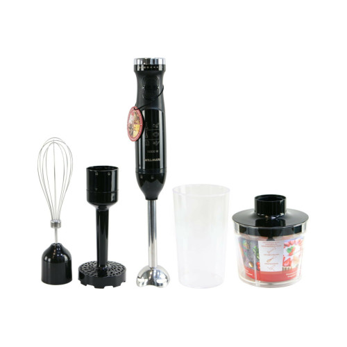 Погружной блендер Willmark WHB-1155BS 2000440 предназначен для смешивания жидкостей и мягких ингредиентов. Снабжен новым электромотором с мощным и мягким звучанием без вибраций. Корпус блендера выполнен из чёрного пластика с покрытием SOFT TOUCH, что придает ему стильный вид и добавляет комфорта при использовании. На блендере установлена кнопка включения блендера, а также TURBO кнопка высокоскоростного режима. На верхней части корпуса расположен регулятор скорости работы мотора. По бокам корпуса расположены кнопки для снятия сменных насадок. В комплект к изделию входит стальная насадка измельчитель твёрдых продуктов - зелени, орехов или овощей, венчик для взбивания яичных белков, сливок, десертов и пластиковый стакан с мерной шкалой до 600 мл. В дополнение прилагается насадка с чащей на 500 мл для измельчения овощей, мяса и приготовления салатов. На дне чаши установлены прорезиненные ножки. В комплект также входит насадка для приготовления картофельного пюре с пластиковым шнеком. Длина сетевого шнура 118 сантиметров с сечением провода 2х0,5 мм. Приобретая данный прибор, вы получаете в своё распоряжение целый кухонный комбайн и незаменимого помощника на кухне. При правильном использовании изделие прослужит в течение многих лет.
