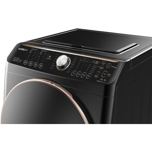 Собранная в эффектном корпусе черного цвета стиральная машина Winia WMD-HWU18W2P поражает воображение максимально допустимой загрузкой: величина этого показателя составляет 15 кг. Доступ к барабану упрощен благодаря наклону. Стоит отметить и эргономичную, также расположенную под наклоном, панель управления. Отдельного внимания заслуживает поддержка функции сушки. Максимальная загрузка с сушкой – 8 кг. Высокую эффективность машины Winia WMD-HWU18W2P помогает обеспечить технология Air Bubble, смысл которой заключается в воздействии на ткань не только воды и чистящего средства, но и воздушных пузырьков. Количество программ – 14. Максимальная частота вращения барабана при отжиме достигает 1200 оборотов в минуту. Класс энергоэффективности машины – C. Габаритные размеры стиральной машины составляют 630x986x830 мм. Столь крупное устройство предпочтительнее устанавливать в просторном санузле или другом помещении, обладающем значительной площадью. Масса модели – 84 кг.