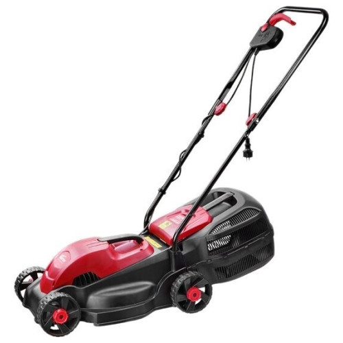 колесная газонокосилка электрический двигатель (1300 Вт) от сетевого кабеля ширина / высота скашивания: 32 см / 26-56 мм выброс травы в жесткий травосборник , назад вес: 7.5 кг уровень шума 96 дБ