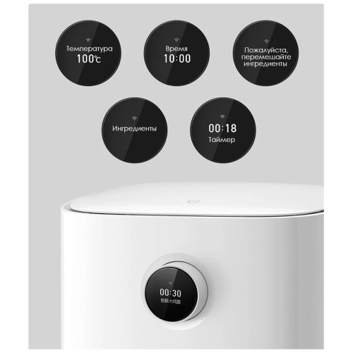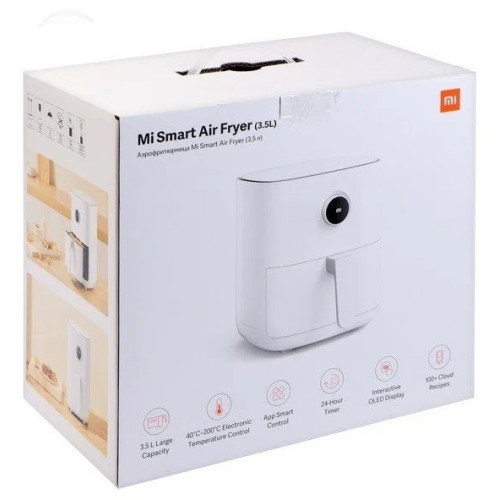 Mi Smart Air Fryer 3.5L Полезная пища с меньшим количеством масла и низким содержанием жира Аэрогриль?Выпекание?Йогурт?Сухофрукты?Разморозка Полезно и быстро Циркуляция нагретого воздуха на 360° Быстрая в приготовлении вкусная еда с низким содержанием жира Не просто аэрофритюрница Устройство также выполняет функцию йогуртницы, фруктосушилки, аэрогриль и электрической печи Непрерывное приготовление пищи до 24 часов* Регулируемая температура от 40°C до 200°C* Непрерывное время работы до 24 часов Умные рецепты Простота использования даже для начинающих Облегчите себе задачу вместе с умными рецептами Интеллектуальное планирование до 24 часов Задайте время приготовления и по возвращению домой вас будет ждать горячая еда. Вытащите корзину, чтобы сделать паузу в приготовлении* Мониторинг степени приготовления пищи в режиме реального времени Сенсорный OLED-экран Удобная настройка дисплея экрана Двухслойное антипригарное покрытие Износостойкое антипригарное покрытие, которое легко мыть