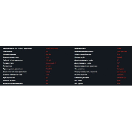 Газонокосилка Yanis Borasco B56SLQ Мощность (Вт/л.с.) : 6 Топливный бак (л) : 1.2 Ширина скашивания (см) : 56 Высота скашивания минимум (мм) : 25 Высота скашивания максимум (мм) : 90 Травосборник : комбинированный Мульчирование : есть Тип двигателя : бензиновый, четырехтактный Самоходная : да Вес (кг) : 42 Гарантия: 3 года