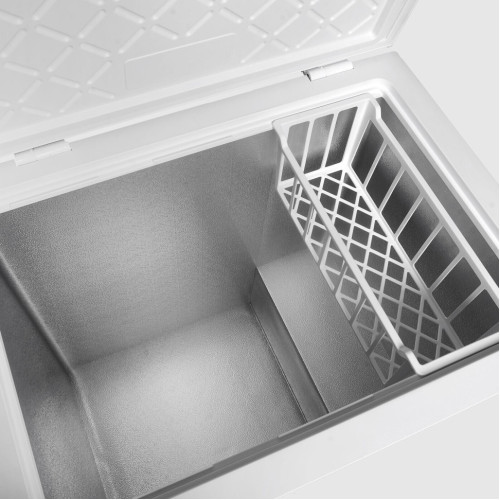 Вместительный морозильный ларь ZCF 207W с двумя режимами, с мощностью заморозки 9 кг/сутки и полезным объемом 198 литров. Морозильный ларь ZARGET ZCF 207W подойдет для домашнего использования, размещения в отапливаемом помещении, на балконе или в кладовке. Мощность замораживания 9 кг/сутки и полезный объем 198 литров. Особенности модели: * Модель ZCF 207W позволяет использовать ларь как холодильник или морозильник на выбор, переключив режим на панели управления. * Использование качественных PCM материалов, позволяет удерживать и отдавать большое количество тепловой энергии, сохраняя при этом постоянную температуру, что позволяет надолго поддерживать низкую температуру в случае отключения электроэнергии при открывании и закрывания крышки. Максимальное время поддержания температурного режима составляет 20 часов. * Внутренне покрытие Easy to clean обеспечивает легкий уход за чистотой внутренней поверхности * Панель управления представлена ручкой термостата и индикатором зеленого цвета. Зеленый индикатор на панели управления означает, что ларь включен в сеть. * Верхняя крышка морозильной камеры открывается на 180°, что позволяет помещать и извлекать продукты с максимальным удобством. * Максимальная мощность замораживания составляет 9 кг/сутки. * Модель относится к классу энергоэффективности А+, поэтому характеризуется экономным потреблением ресурса электросети. * Корпус морозильного ларя произведен из высококачественных износостойких материалов, внутренние комплектующие защищены от коррозии и ржавчины на протяжении всего срока эксплуатации.