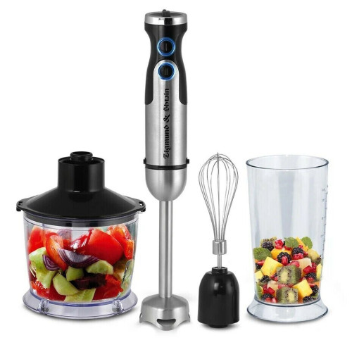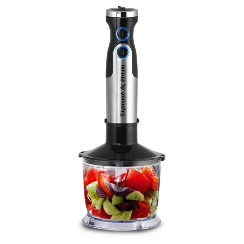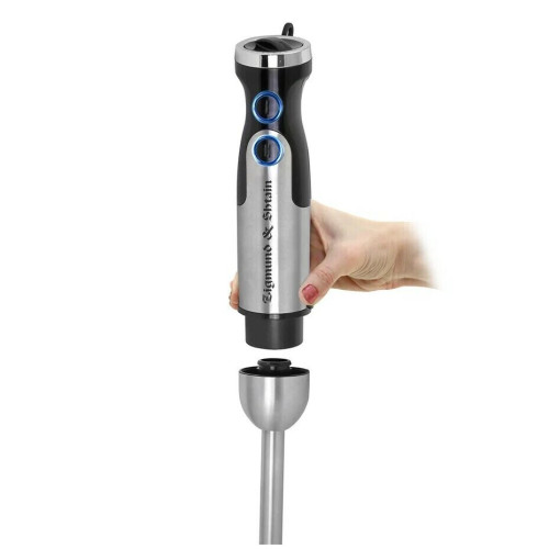 Блендер погружной Zigmund Shtain BH-345 M многофункциональный прибор 3 в 1 с расширенным набором насадок и аксессуаров. Он может измельчать, взбивать, готовить пюре. Мощность 1500 Вт, 6 скоростных режимов с диапазоном от 10 000 до 16 000 оборотов в минуту. Плавная регулировка скоростей. Режим «Турбо», технология EasyBlend – аккуратная работа без брызг. Насадка-блендер, насадка-венчик, нож измельчителя - все из нержавеющей стали. Эргономичная конструкция корпуса с прорезиненным покрытием против скольжения DC-мотор с пониженным уровнем шума.