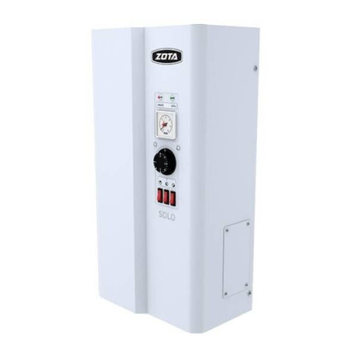 В сезоне 2017 завод приступил к серийному выпуску новых электрокотлов, созданных на базе модели Balance. Основная идея - создать котел по образу мини-котельной, идеально подходящий для установки в качестве резерва для небольших помещений. Главное отличие от МК - отсутствие расширительного мембранного бака. Линейка перекрывает диапазон мощностей, который можно подключить к однофазной сети: от 3 до 9 кВт. Под кожухом смонтирована колба с нагревательным элементом, блок управления, циркуляционный насос (Grundfos), группа безопасности. Преимущества электрокотлов серии ZOTA «Solo» * блоки ТЭН с пониженной ваттной нагрузкой из нержавеющей стали; * котлы рассчитаны на применение незамерзающих теплоносителей; * корпус в теплоизоляции ; * удобен для сервисного обслуживания; * три ступени мощности для эффективного расходования электроэнергии; * силовой блок работает бесшумно за счет применения электромагнитных реле в коммутирующей схеме; * регулировка температуры нагрева воды до 90°С; * рабочее давление 3 атмосферы; * присоединительные размеры патрубков 3/4".