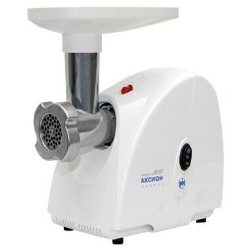 Белая мясорубка Аксион М 31.04, несмотря на компактный размер, обладает впечатляющими характеристиками. За одну минуту она может произвести 1.7 кг мясного фарша. Функция реверса служит для того, чтобы в случае, когда шнек забивается, можно было направить его движение в обратную сторону. Тогда все, что не может пройти через нож, выйдет через входное отверстие и мясорубка снова сможет продуктивно работать. Помимо трех решеток для фарша с разными отверстиями, Аксион М 31.04 комплектуется насадкой-соковыжималкой. Она поможет отжать сок из мягких фруктов и овощей и даже произвести набивку колбас.