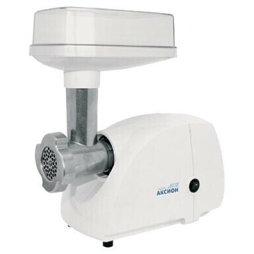 Электрическая мясорубка Аксион М 12.04 имеет максимальную мощность 600 Вт и производительность не менее 30 кг/час. Модель оснащена отсеком для хранения шнура, а также комплектуется приставкой — соковыжималкой. Она предназначена для получения соков с мякотью из мягких овощей, фруктов и ягод.