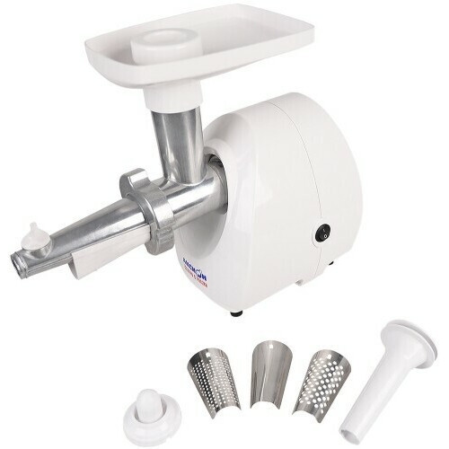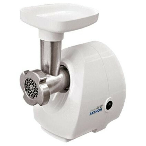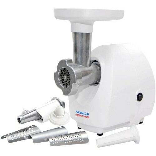 Белая мясорубка Аксион М 21.04 отлично подходит для изготовления фарша, создания колбасных изделий и получения натурального сока в домашних условиях. Данная модель имеет привлекательный пластиковый корпус обтекаемой формы. Вес устройства равен 5 кг, а его габариты составляют 17x32x26 см. Имеющиеся прорезиненные ножки гарантируют устойчивость при эксплуатации. Мясорубка работает с мощностью до 1000 Вт и достигает производительности 839г/мин. Параметры устройства позволяют использовать посуду с высотой до 11 см. Не имеется дополнительной защиты от перегрева и функции реверса, из-за чего непрерывная эксплуатация может проводиться до 15 минут. Предусматривается 2 перфорированных диска для фарша, а также насадка-соковыжималка и 1 насадка для приготовления колбасных изделий. В корпусе Аксион М 21.04 имеется специальный отсек для хранения сетевого шнура, длина которого равна 1,2 м. Дополнительные насадки приобретаются и хранятся отдельно.