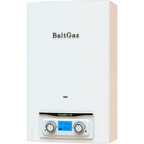 Газовый проточный водонагреватель BaltGaz Comfort 13 New обладает современным дизайном и компактными размерами, что позволяет ему гармонично вписаться в любое пространство. Устройство оснащено цифровым дисплеем, который позволяет контролировать заряд батареи и температуру нагрева воды. Особенности и преимущества: * Надёжный медный теплообменник 99,9%Сu. * Водогазовый узел BaltGaz с латунной водяным блоком; * Газовая горелка нового поколения; * Включение при минимальном давлении воды; * Яркий дисплей с индикацией ошибок и часами; * 7 систем безопасности; * Возможность подключения к сети 220V. Газовые водонагреватели BaltGaz серии Comfort – это надежные и современные приборы с эргономичным дизайном. Приборы данной серии имеют механическую модуляцию пламени, что обеспечивает равномерность температуры, без резких перепадов, при одновременном использовании горячей воды в двух комнатах.