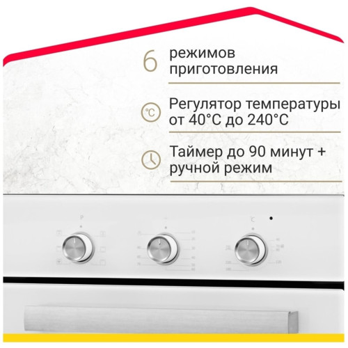 Общие данные: Габариты: 59,5х45х61 см Объем: 49 л Гриль: есть Конвекция: есть Подсветка духовки: есть Количество режимов работы: 6 Самоочистка: эмаль ле776;гкой очистки чёрного цвета, паровая очистка Принадлежности: стандартный противень с антипригарным покрытием, хромированная решётка Управление и функции: Электрический термостат Механический таймер на 90 мин. Управление: утапливаемые переключатели Безопасность: Количество стёкол дверцы: 2 Дополнительная информация: Класс энергоэффективности А Внутреннее съёмное стекло лёгкой очистки Фронтальное освещение духовки Хромированные направляющие Материал панели управления: стекло Цвет продукта: белый Цвет ручки: нержавеющая сталь Цвет переключателей: нержавеющая сталь