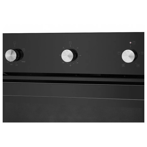 Стильный газовый встраиваемый духовой шкаф высокого качества сборки, актуального дизайна и расширенного функционала. Объем 60 л при стандартной ширине 60 см позволяет готовить одновременно несколько блюд, разместив решетку или противень на одном из 5-ти уровней боковых направляющих. Один уровень оснащен удобными телескопическими направляющими. Внутреннее покрытие камеры выполнено из специальной легкоочищающейся эмали черного цвета. Фронтальная панель дверцы, лицевая часть блока управления и фасад ручки дверцы сделаны из высококачественного жаропрочного стекла черного цвета, окрашенного по всему объему, что является отличительной чертой бытового прибора премиум-класса. Механическое управление осуществляется цельнометаллическими поворотными ручками. Можно выставить температуру готовки, установить таймер (0-60 мин) и выбрать один из 5 режимов работы: нижний газовый нагрев с вентилятором, традиционная готовка, газовый гриль, вентилятор, освещение. Данная модель работает как при открытом, так и при закрытом гриле. Дверца состоит из 3-х жаростойких стекол немецкого производителя SCHOTT. Благодаря подобной конструкции образовывается холодный фронт, что делает процесс приготовления безопасным, исключая возможность ожога при касании. Трамп-линии нанесены на внутреннем стекле для создания визуального эффекта непрозрачности фасада: при выключенном освещении не видно посуду, находящуюся внутри духовой камеры, а при включенном освещении можно в деталях рассмотреть весь процесс готовки. Надежность духового шкафа обеспечивается полным газ-контролем – система, которая перекрывает подачу газа, если потух огонь. Автоматический электроподжиг является дополнительным преимуществом этой модели.