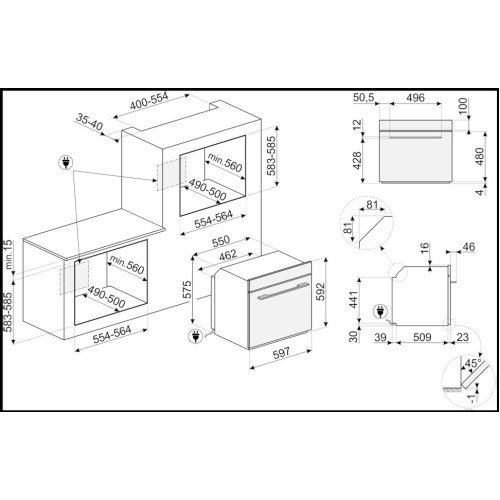 Общие характеристики - Тип духового шкафа: электрический - Тип подключения: независимая - Очистка духовки: пиролитическая - Материал рабочей камеры: эмаль Ever Clean - Объем духовки: 70 л - Цвет: чёрный - Цвет фурнитуры: чёрный Управление - Тип управления: электромеханическое - Переключатели: поворотные - Расположение переключателя: на поверхности духового шкафа - Тип дисплея: LCD - Таймер: цифровой, таймер с акустическим сигналом, таймер включения/выключения - Звуковой таймер: да Индикация - Индикация текущей программы: да - Индикация режима работы: да - Индикатор текущей температуры: да - Индикатор времени приготовления: да Режимы работы - Количество режимов работы: 11 - Режимы работы: статический, вентилируемый, термовентилируемый, турбо, Eco, гриль большой, гриль большой+конвекция, нижний нагрев, нижний+задний нагрев+конвекция, функция Пицца, поднятие теста - Тип гриля: тэн - Программа размораживания: по времени - Вертел: нет - Режим поддержания температуры: да - Количество уровней приготовления: 5 - Максимальная температура духового шкафа: 280 °С Безопасность - Тангенциальное охлаждение: да - Блокировка панели управления: да - Блокировка от детей: да - Автоматическое отключение: да - Автоматическое отключение при открытой дверце: да Мощность и энергопотребление - Класс энергопотребления: A+ - Мощность подключения: 3000 Вт - Мощность гриля: 1800 Вт Дополнительная информация - Дополнительные возможности духового шкафа: вентилятор охлаждения, быстрый разогрев - Особенности конструкции духового шкафа: съемная дверца, петли Soft close, плавное закрытие дверцы, съемное внутреннее стекло - Дверца духовки: откидная - Количество стекол дверцы: 4 - Режим "шаббат": да - Часы: электронные - Тип освещения: галогенная лампа - Количество ламп освещения: 1 - Мощность одной лампы: 40 Вт - Количество уровней направляющих: 5 - Полозья для противней: металлические - Дополнительная информация: режим Showroom Комплектация - Комплект поставки: решётка, противень - Инструкция: да Размеры и вес - Высота: 59.2 см - Ширина: 59.7 см - Глубина: 54.8 см - Высота встраивания: 58.5 см - Ширина встраивания: 56.4 см - Глубина встраивания: 56 см - Вес: 38.8 кг