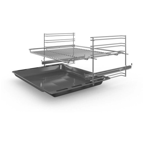 Электрический духовой шкаф Bosch станет хорошим помощником на кухне. Готовьте стейки, запекайте мясо, или пышные пироги — все получится. Восемь режимов нагрева позволят подобрать оптимальные настройки. Для вашей безопасности на одном уровне установлены телескопические направляющие. Противень или решетка выезжают из камеры и надежно удерживаются - не нужно придерживать его, когда пробуете готовность или достаете блюдо. Простое управление, два поворотных переключателя и сенсорные кнопки помогут быстро установить параметры работы. Панель управления блокируется, чтобы дети случайно не изменили настройки.