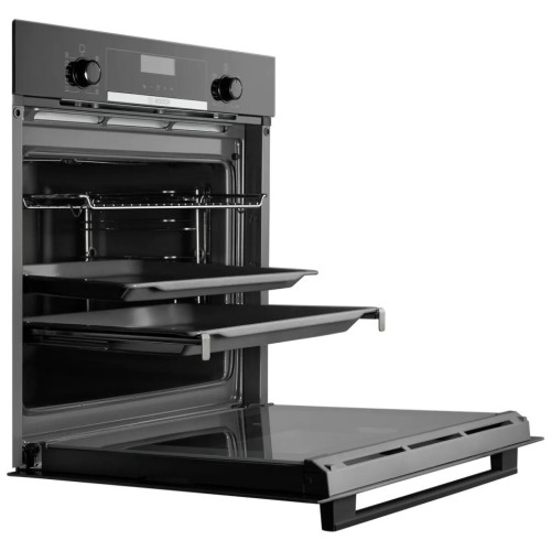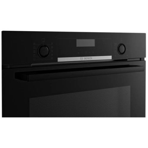 Встраиваемая электрическая духовка Bosch снабжена электронной системой управления Autopilot 10. Она предлагает десять автоматических программ, соответствующих рецептам популярных блюд. С ними приготовить птицу, мясо, рыбу, овощи, рагу, жаркое или запеченную картошку очень просто – достаточно выбрать подходящий режим, указать массу продуктов и нажать кнопку старта. Конвектор духовки поддерживает непрерывную циркуляцию горячего воздуха. Он позволяет готовить на трёх уровнях одновременно, глубоко прогревая продукты. С ним блюда быстро покрываются хрустящей корочкой, но сохраняют сочную серединку. Внутренние стенки камеры покрыты эмалью EcoClean Direct. В её состав входят микроскопические керамические сферы, которые расщепляют жир при длительном нагреве. Благодаря этому устройство можно отмыть обычной губкой без сильнодействующих чистящих средств. Сенсорная панель управления предоставляет быстрый доступ к таймерам с отключением нагрева и звуковым сигналом. Встроенный доводчик плавно закрывает дверцу, а телескопические направляющие помогают аккуратно доставать готовые блюда.