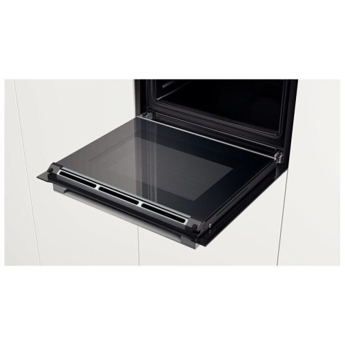 Электрический встраиваемый духовой шкаф Bosch, дополненный режимом “4D горячий воздух”, упростит процесс приготовления блюд, позволив добиться прекрасных кулинарных результатов. 4D-горячий воздух: одинаково превосходный результат при приготовлении на всех четырех уровнях, вместе или в отдельности, благодаря равномерному распределению нагретого воздуха. Удобное меню DishAssist: автоматические установки режима, оптимальной температуры и времени приготовления для ваших любимых блюд. Интерактивный TFT-дисплей: простое и удобное управление благодаря переключателю ControlRing с сенсорными текстовыми дисплеями и анимацией. Дверца духового шкафа закрывается плавно и тихо благодаря амортизатору SoftClose. Легкая и быстрая очистка: уникальное пористое покрытие EcoClean непрерывно расщепляет жир на углекислый газ и воду при каждом использовании духовки.