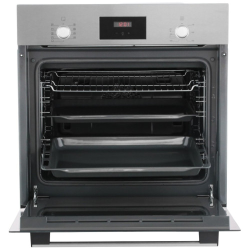 Электрический духовой шкаф имеет всё самое необходимое, чтобы его использование сопровождалось комфортом. Для забывчивых хозяек присутствует встроенный таймер — теперь они не пропустят момент, когда нужно извлечь готовое блюдо из духовки. Чтобы после завершения приготовления слишком медленно остывающая дверца не привела к нагреву кухонного гарнитура и других электроприборов, вентилятор охлаждения быстро остудит духовку до комнатной температуры. Духовой шкаф готов предложить в распоряжение хозяйки 8 режимов работы, наиболее предпочтительный из которых можно выбрать при помощи удобной панели управления. Функция гриля позволит вам запечь продукт до хрустящей корочки. Конвекция обеспечит равномерное распределение тепла внутри духовки по всему её объёму. Если поместить замороженный продукт внутрь духового шкафа и активировать программу размораживания, то внутри него начнет циркулировать воздух комнатной температуры, благодаря чему продукт разморозится гораздо быстрее традиционного способа разморозки. Режим 3D Hotair позволяет добиться одинаково превосходного результата при приготовлении на всех трёх уровнях (вместе или в отдельности) благодаря равномерному распределению нагретого воздуха.