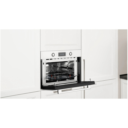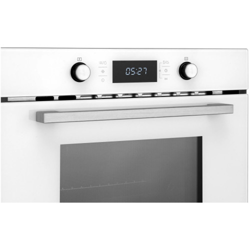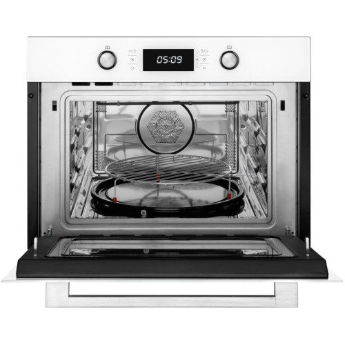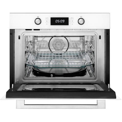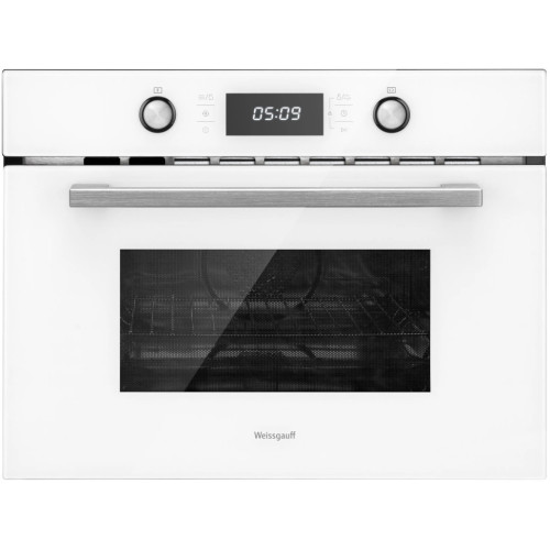 Компактный встраиваемый электрический духовой шкаф WEISSGAUFF OE 449 PDW с функцией СВЧ сочетает функционал сразу двух полноценных приборов: духового шкафа с конвекцией и грилем и микроволновую печь. При этом режимы приготовления можно сочетать с микроволнами. На фронтальной панели из закаленного стекла белого цвета расположена сенсорная панель управления с ярким дисплеем. Стенки камеры изготовлены из нержавеющей стали ECO STEEL, поэтому еда в процессе приготовления не приобретет специфического вкуса и запаха. Также поверхность легко поддерживать в чистоте. В духовом шкафу WEISSGAUFF OE 449 PDW установлено 8 режимов работы, включая гриль, конвекцию и традиционный верхний и нижний жар. И 13 программ автоменю для СВЧ, включающих в себя режимы для овощей, пирогов, супов, соусов, мясных блюд и пиццы. Духовой шкаф OE 449 PDW поставляется с комплектацией ECO PREMIUM, которая включает универсальный противень, две решетки для жарки на гриле и поворотный стол.