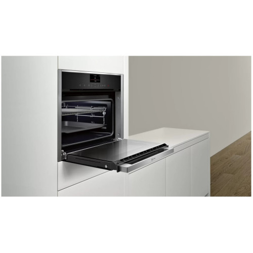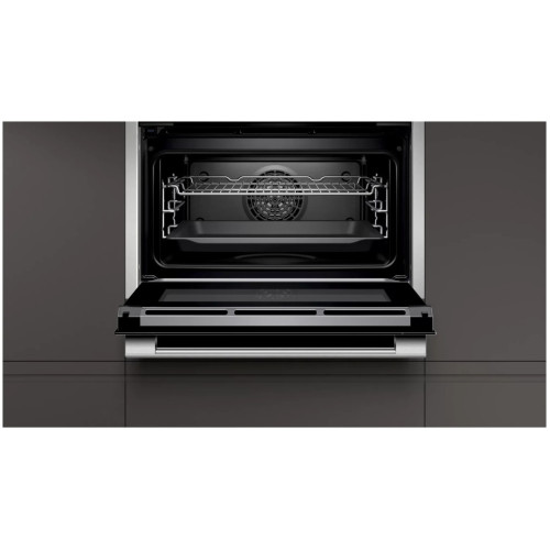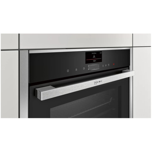Приготовьте одновременно несколько блюд для полноценного обеда или ужина в одном духовом шкафу. С CircoTherm от NEFF вы можете одновременно запекать рыбу, лазанью, пирог и не только. Мощный направленный поток воздуха обеспечит сочность и неповторимый аромат ваших блюд. Компактный встраиваемый духовой шкаф с двигающейся ручкой обеспечивает превосходную эргономику. Благодаря бесшумному открытию и закрытию дверцы Soft Close и Soft Open духовой шкаф HEFF создаст комфорт на вашей кухне. При случайном открывании и закрывании духовки технология обеспечит плавность и бесшумность хода дверцы. Технология Sous-vide позволяет готовить пищу в вакуумной упаковке с использованием режима FullSteam. Технология низкотемпературного приготовления в вакууме заботится о продуктах, сохраняя их вкус, аромат, витамины, минералы и текстуру. Переключатель Shift Control позволяет быстро перемещаться между разделами меню. Достаточно одного прикосновения, чтобы проверить, набрала ли духовка заданную температуру, изменить режим или проверить готовность блюда. С технологией HomeConnect вы можете наслаждаться свободой, которую даёт возможность управления приборами с помощью приложения на смартфоне или планшете. Теперь не обязательно находиться рядом с прибором, чтобы начать, отслеживать и корректировать процесс приготовления пищи. Самоочищающееся покрытие EcoClean находится на задней стенке с обеих сторон. Процесс очистки запускается каждый раз при включении духового шкафа. Поверхности с покрытием EcoClean останутся чистыми на протяжении всего срока службы прибора. Baking and Roasting Assistant и автоматические программы помогут выбрать оптимальный температурный режим, время и программы приготовления для различных блюд. Выберите блюдо, подтвердите выбор — остальное сделает духовка. LED-освещение подчёркивает индивидуальность дизайна кухни и оптимально освещает рабочую поверхность.