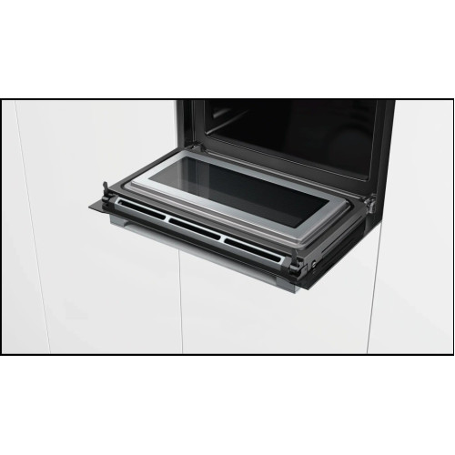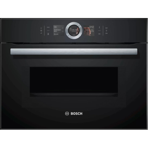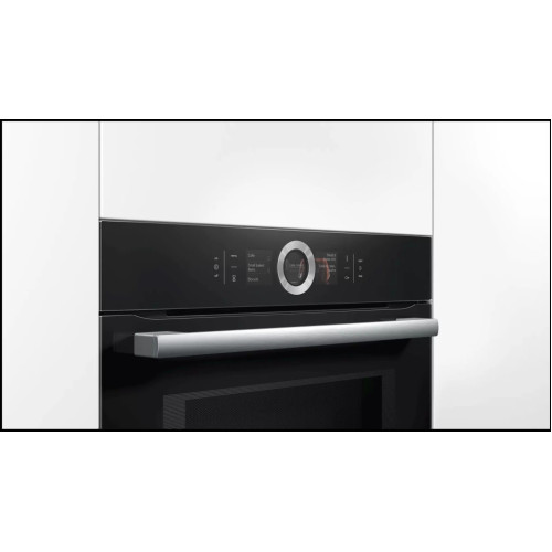 Электрический духовой шкаф BOSCH CMG6764B1 - имеет сенсор готовности выпечки PerfectBake и многоточечный термощуп PerfectRoast: лучший путь для превосходных результатов запекания и выпечки. Функция микроволн: позволяет быстро разогреть или приготовить блюдо в комбинации с другими режимами. Удобное меню DishAssist: автоматические установки режима, оптимальной температуры и времени готовки для огромного количества блюд. Интерактивный TFT-дисплей: простое и удобное управление благодаря переключателю ControlRing с сенсорными текстовыми дисплеями и анимацией. Пиролитическая самоочистка: благодаря автоматической системе очистки вы можете не тратить силы на уборку. Пиролиз является наиболее эффективной системой очистки духовки и принадлежностей без использования химических чистящих средств.
