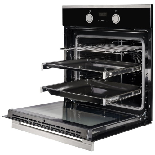 Современную кухню дизайна Hi-Tech невозможно представить без стильного встраиваемого духового шкафа. Поэтому стоит обратить внимание на электрический духовой шкаф HН 668 T черного цвета. Компактный и мощный прибор оснащен таким функционалом: 9 программных режимов работы; макси-гриль; наличие конвекции; подсветка камеры; размораживание продуктов; двухуровневые телескопические направляющие противней; наличие сенсорного таймера. С духовым шкафом HН 668 T приготовление пищи превратится в быстрый и приятный процесс. Очистка агрегата также не займет много времени, ведь стеклянная дверца с доводчиком может быть легко снята, а покрытие Crystal Clean не накапливает следы жира и грязи. Фасад духового шкафа выполнен из закаленного стекла. Основные преимущества стеклянного фасада: эстетичность и красота; прочность и долговечность; легкость в уходе; устойчивость к царапинам; высокая степень безопасности, поскольку при разрушении закаленное стекло разбивается на мелкие фрагменты, а не на режущие осколки. Дверца духового шкафа не нагревается, благодаря инновационной технологии охлаждения. Первое внутреннее стекло является атермальным, благодаря чему, часть тепла возвращается обратно в камеру духовки, ускоряя нагревание, поддерживая нужный температурный уровень и оказывая содействие процессу приготовления блюд. Второе стекло установлено посередине, оно способствует раздельному циркулированию потоков воздуха вентиляции дверцы. Фасадное стекло практически не нагревается, поскольку все потоки горячего воздуха взаимодействуют внутри камеры. Вся конструкция легко разбирается без дополнительных инструментов, позволяя проводить тщательную очистку каждого стекла по отдельности. Программа разморозки духового шкафа быстро и эффективно подготовит замороженные полуфабрикаты к приготовлению. Благодаря данной полезной функции, больше не понадобится размораживать продукты при комнатной температуре или в холодильном отсеке. Функция быстрого нагрева, сокращает время необходимое для поднятия температуры до нужного уровня. Каждый раз используя духовой шкаф вы будете экономить свое время избегая долго ожидания прогрева камеры духовки. Внутренняя камера духовки объемом 65 литров хоть, на первый взгляд, и имеет меньший объем, по сравнению с духовками на 70 и 76 литров, но способна легко вмещать противни такого же размера. Особенности камеры: отсутствие швов; не имеет стыков, в которых может скапливаться грязь; процесс очистки максимально прост. Наличие съемных телескопических двухуровневых направляющих обеспечивает удобство и эффективность работы с духовым шкафом. Основные преимущества: выдвижной механизм; плавный и мягкий ход полозьев; надежная установка; наличие упоров, блокирующих выпадение противня; сведение к минимуму риска термических ожогов. Конструкция может быть полностью разобрана без использования дополнительных инструментов, с целью максимально эффективного очищения камеры и телескопических направляющих. Для проведения тотального очищения духового шкафа, следует предпринять ряд простых шагов: без приложения особых усилий снять дверцу; вытащить стекла; тщательно промыть все укромные уголки прибора. По окончании, с той же легкостью, следует собрать конструкцию и установить ее обратно без применения специальных инструменто