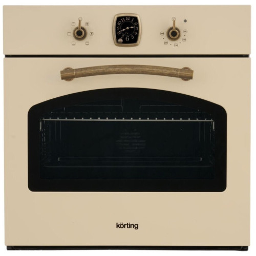 Классический дизайн. Классический дизайн - это аксессуары, ручки дверцы и другие элементы, выполненные под бронзу, задача которых создать идеальное сочетание с натуральными материалами и фурнитурой кухонной мебели в классическом или ретро стиле. Часы в ретро стиле. Внешний вид часов, расположенных на панели управления выполнен в классическом, традиционном стиле. Не смотря на то, что каждый элемент часов от стрелок до цифр выглядит как и много лет назад, внутри скрывается современный электронный таймер, который подаст акустический сигнал по истечению заданного времени. Электронный таймер. Электронный таймер поможет установить время продолжительности приготовления, после которого духовой шкаф остановит свою работу, время отложенного старта, который включит духовой шкаф в необходимый момент и самостоятельно отключит его по истечению заданного времени, и акустический сигнал, который подается по истечению заданного времени даже, если духовой шкаф не находится в режиме приготовления. 6 режимов нагрева. Шесть режимов нагрева позволяют приготовить любое блюдо, используя стандартные нагревательные элементы. Кислостойкая эмаль легкой очистки «Metallic Grey» Эмаль, используемая в духовых шкафах K?rting не только облегчает чистку внутренних стенок духового шкафа, но и соответствует самым высоким классам устойчивости к агрессивным воздействиям: чистящим средствам или фруктовым кислотам. Камера духового шкафа будет сохранять свои свойства в течение всего срока использования прибора. Конвекционный нагрев. Конвекционный вентилятор обеспечивает постоянную циркуляцию горячего воздуха по всей камере, что позволяет равномерно запекать блюдо со всех сторон и даже на нескольких уровнях. Режим конвекции особенно оценят любители приготовления выпечки. Гриль. Это способ приготовления пищи с помощью инфракрасного ТЭН-а, который расположен в верхней части камеры духовки. Благодаря высокой температуре пища быстро подрумянивается, приобретает красивую поджаристую корочку, оставаясь нежной и сочной внутри. Тройное остекление дверцы. Конструкция дверцы с применением трех стекол позволяет снизить температуру фронтальной поверхности до минимума. Помимо этого стекла обладают свойствами защитного экрана, удерживающего тепло внутри камеры. Все это снижает потребление электроэнергии и делает приготовление полностью безопасным. Освещаемая камера духового шкафа Лампа освещения включается автоматически при выборе режима приготовления. Очень удобно следить за процессом приготовления, не открывая дверцу и не выпуская тепло из рабочей камеры. Автоматическое отключение. Специальный защитный элемент автоматически отключает духовой шкаф в случае, если пользователь забыл это сделать сам. Время экстренного отключения зависит от ранее выбранной температуры. Можно быть полностью уверенным в безопасности для мебели.