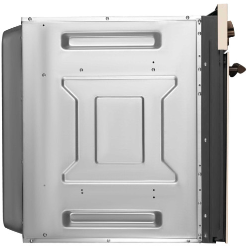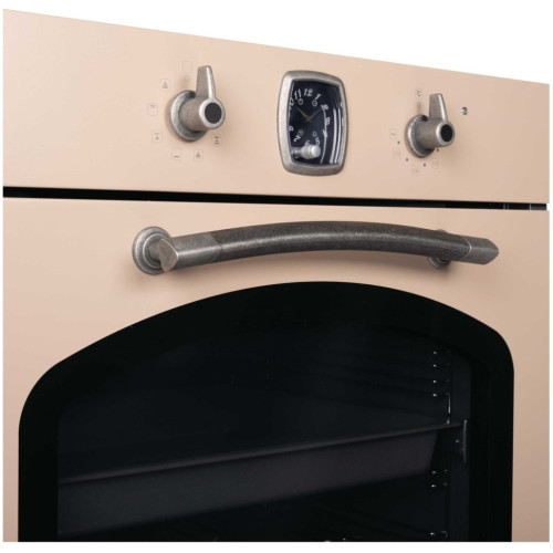 Классический дизайн. Классический дизайн - это аксессуары, ручки дверцы и другие элементы, выполненные под бронзу, задача которых создать идеальное сочетание с натуральными материалами и фурнитурой кухонной мебели в классическом или ретро стиле. Часы в ретро стиле. Внешний вид часов, расположенных на панели управления выполнен в классическом, традиционном стиле. Не смотря на то, что каждый элемент часов от стрелок до цифр выглядит как и много лет назад, внутри скрывается современный электронный таймер, который подаст акустический сигнал по истечению заданного времени. Электронный таймер. Электронный таймер поможет установить время продолжительности приготовления, после которого духовой шкаф остановит свою работу, время отложенного старта, который включит духовой шкаф в необходимый момент и самостоятельно отключит его по истечению заданного времени, и акустический сигнал, который подается по истечению заданного времени даже, если духовой шкаф не находится в режиме приготовления. 8 режимов нагрева. Восемь режимов нагрева, включающие работу классических нагревательных элементов, кольцевого нагревателя в сочетании с конвектором, позволяют готовить самые сложные и необычные блюда. Телескопические направляющие. Телескопические направляющие надежно удерживают противень в духовке, что дает больше безопасности и комфорта – противень не нужно удерживать в руках, чтобы проверить качество приготовления блюд. Каталитическая самоочистка. На задней стенке духовки установлена металлическая пластина со специальным самоочищающимся покрытием, расщепляющая загрязнения, когда камера прогревается до 200°С. Каталитическая панель облегчает процесс очистки духовки от загрязнений. Тройное остекление дверцы. Конструкция дверцы с применением трех стекол позволяет снизить температуру фронтальной поверхности до минимума. Помимо этого стекла обладают свойствами защитного экрана, удерживающего тепло внутри камеры. Все это снижает потребление электроэнергии и делает приготовление полностью безопасным. Освещаемая камера духового шкафа Лампа освещения включается автоматически при выборе режима приготовления. Очень удобно следить за процессом приготовления, не открывая дверцу и не выпуская тепло из рабочей камеры. Автоматическое отключение. Специальный защитный элемент автоматически отключает духовой шкаф в случае, если пользователь забыл это сделать сам. Время экстренного отключения зависит от ранее выбранной температуры. Можно быть полностью уверенным в безопасности для мебели.