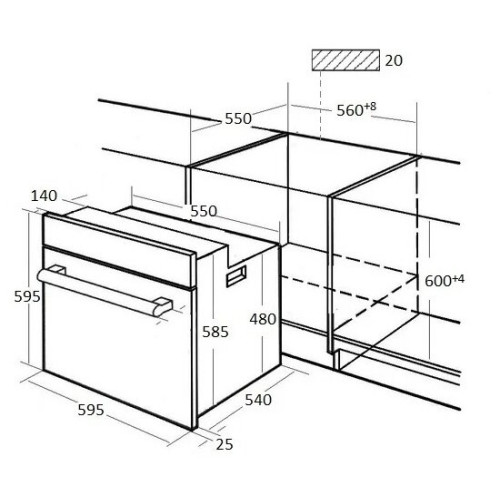 | Режимы нагрева | 59.5х59.5х54.7 |