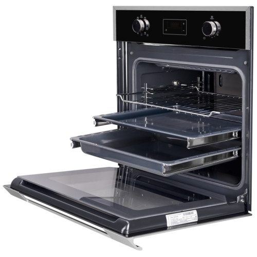 СТЕКЛЯННЫЙ ФАСАД Фасад выполнен полностью из закаленного стекла. Основные преимущества стеклянного фасада это долговечность и легкий уход. Закаленное стекло прочный и надежный материал, устойчивый к царапинам и обладающий высокой степенью безопасности, так как при разрушении закаленное стекло разбивается на мелкие фрагменты, а не на режущие осколки. Уход за чистотой прост, своевременно протирать влажной салфеткой будет достаточно, чтобы поддерживать идеальный внешний вид вашего духового шкафа. ОХЛАЖДЕНИЕ ДВЕРЦЫ ДУХОВКИ 3 СТЕКЛА Первое внутренние стекло атермальное, возвращает часть тепла обратно в камеру духовки, что ускоряет процесс набора заданной температуры, а также благоприятно влияет на процесс приготовления. Второе стекло установлено между атермальным и фасадным стеклом, способствует раздельному циркулированию потоков воздуха вентиляции дверцы. Вся конструкция легко разбирается без дополнительных инструментов, позволяет проводить очистку каждого стекла отдельно. ТУРБО РЕЖИМ Приготовление на нескольких уровнях, это особенность турбо режима предназначенная для равномерного нагрева всего объема духовки. Вам не нужно думать где лежит ваше блюдо, интенсивность температуры одинаковая во всей камере и готовка идет с равномерным нагревом. ДВУХУРОВНЕВЫЕ ТЕЛЕСКОПИЧЕСКИЕ НАПРАВЛЯЮЩИЕ Легко снимающиеся телескопические направляющие на двух уровнях обеспечивают удобство и эффективность работы с духовкой. Многоуровневая система установки позволяет расположить направляющие на нужном вам уровне. Вся конструкция может быть полностью разобрана без дополнительных инструментов, что дает возможность с легкостью проводить чистку камеры и телескопов. СЪЕМНАЯ И ПОЛНОСТЬЮ РАЗБОРНАЯ ДВЕРЬ Если вы решили провести полную чистку духовки, вы сможете легко снять дверь, снять с нее стекла и промыть все уголки и закрытые места. Потом вы, с той же легкостью, сможете ее собрать и установить обратно, без специальных инструментов. ДОВОДЧИК ДВЕРИ HI-TECH В духовку установлены современные и надежные петли с доводчиком. Доводчик двери обеспечивает плавное и безопасное закрытие. До закрытие двери происходит автоматически, что гарантирует избежание ударов и повреждений при не аккуратном или сильном закрытие и это также продлевает срок службы духовки. КОМПЛЕКТ ПРОТИВНЕЙ В комплекте с духовкой идут два противня с покрытием ProCook, стандартный и глубокий, а также решетка. Глубокий противень имеет сток для жира, повышающий эффективность готовки блюд с высоким жировыделением. Решетка имеет универсальную форму, может быть установлена как отдельно, так и внутри глубокого противня, имеет защитное ребро фиксирующие расположения блюда с внутренней стенки и ножки для удобного расположения на столе. ПАРОВАЯ ОЧИСТКА Для облегчения ухода за чистотой камеры духовки, вы можете воспользоваться функцией очистки паром. Налив в противень воду и запустив режим, вода испаряясь будет образовывать пар, который размягчит жир и грязь осевшие внутри камеры духовки. После завершения, процесс уборки исключит оттирания засохшей и прикипевшей грязи. CRYSTAL CLEAN Эмаль легкой очистки Crystal clean, упростит уборку камеры духовки. Если вы начнете уборку через 1-3 часа после завершения готовки, эмаль Crystal clean гарантирует легкую очистку жира и других элементов грязи в каме