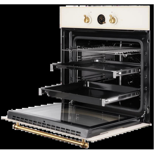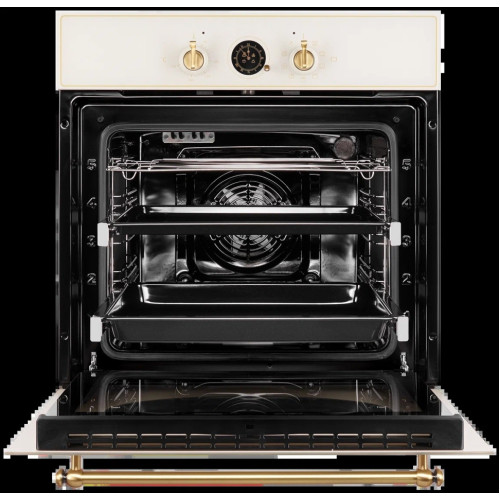 Не знаете, каким прибором дополнить элегантную классическую кухню? Оптимальным вариантом станет приобретение электрического духового шкафа SR 669 C бежевого оттенка с бронзовой фурнитурой. Эргономичный агрегат способен не только удачно вписаться в интерьер, но и выполнять множество функций: -9 автоматических программ, -готовка блюд на гриле с использованием разных модификаций; -возможность включения конвекционного режима; разморозка полуфабрикатов; -наличие специального доводчика дверцы; -2-уровневые направляющие из хрома; светодиодное освещение; -наличие аналогового аутентичного таймера, стилизованного под «старину». Встраиваемый духовой шкаф SR 669 C от немецкого производителя прослужит максимально долго, благодаря высокому качеству сборки.