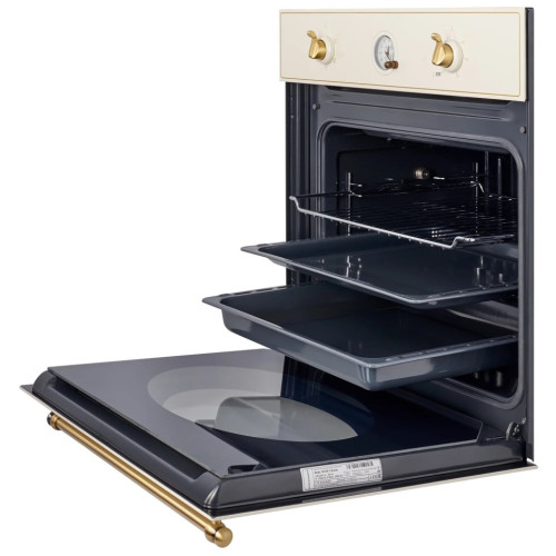 АУТЕНТИЧНЫЙ ТАЙМЕР Таймер оформленный под старинные часы с римским циферблатом, подчеркнет интерьер вашей кухни, добавив аутентичности своим видом. Так же сохраняет все современные функции и легок в управлении. МЕТАЛЛИЧЕСКАЯ ФУРНИТУРА Фурнитура духового шкафа из металла ручной работы. Индивидуальный подход к изготовлению каждого элемента из металла, гарантирует надежность и долгий срок службы. Эстетичный дизайн элементов из металла подчеркивает духовой шкаф и создает особенный антураж всей кухни. ОХЛАЖДЕНИЕ ДВЕРЦЫ ДУХОВКИ 3 СТЕКЛА Первое внутренние стекло атермальное, возвращает часть тепла обратно в камеру духовки, что ускоряет процесс набора заданной температуры, а также благоприятно влияет на процесс приготовления. Второе стекло установлено между атермальным и фасадным стеклом, способствует раздельному циркулированию потоков воздуха вентиляции дверцы. Вся конструкция легко разбирается без дополнительных инструментов, позволяет проводить очистку каждого стекла отдельно. РАЗМОРОЗКА Функция разморозки быстро и эффективно подготовит продукт к готовке. Вам больше не понадобится размораживать продукты в комнатной температуре или холодильнике. СЪЕМНАЯ И ПОЛНОСТЬЮ РАЗБОРНАЯ ДВЕРЬ Если вы решили провести полную чистку духовки, вы сможете легко снять дверь, снять с нее стекла и промыть все уголки и закрытые места. Потом вы, с той же легкостью, сможете ее собрать и установить обратно, без специальных инструментов. КОМПЛЕКТ ПРОТИВНЕЙ В комплекте с духовкой идут два противня с покрытием ProCook, стандартный и глубокий, а также решетка. Глубокий противень имеет сток для жира, повышающий эффективность готовки блюд с высоким жировыделением. Решетка имеет универсальную форму, может быть установлена как отдельно, так и внутри глубокого противня, имеет защитное ребро фиксирующие расположения блюда с внутренней стенки и ножки для удобного расположения на столе. ПАРОВАЯ ОЧИСТКА Для облегчения ухода за чистотой камеры духовки, вы можете воспользоваться функцией очистки паром. Налив в противень воду и запустив режим, вода испаряясь будет образовывать пар, который размягчит жир и грязь осевшие внутри камеры духовки. После завершения, процесс уборки исключит оттирания засохшей и прикипевшей грязи. CRYSTAL CLEAN Эмаль легкой очистки Crystal clean, упростит уборку камеры духовки. Если вы начнете уборку через 1-3 часа после завершения готовки, эмаль Crystal clean гарантирует легкую очистку жира и других элементов грязи в камере. Достаточно будет протереть ее влажной тряпкой. КЛАСС ЭНЕРГОПОТРЕБЛЕНИЯ А Маркировки энергоэффективности товара производителем, обязательная процедура согласно директивам комиссии Евросоюза, имеющие буквенные обозначения от A до G, где A является наивысшей. Класс энергопотребления А это, использования современных технологий для достижения низкого и эффективного энергопотребления. Более эффективное энергопотребление снижает затраты на электричество и экономит семейный бюджет.