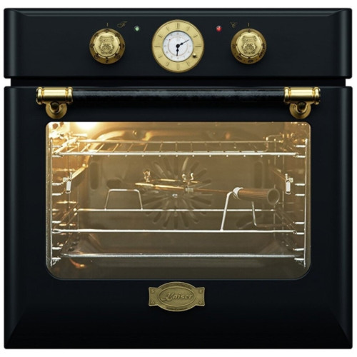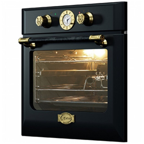 Общие характеристики Духовка: электрическая; Размеры (Ширина): 60 см; Описание производителя: * Габариты (ШxГxВ), мм.595х595х560 * Минимальные размеры для встраивания: (ШxГxВ), мм560х560х595 * Объем духовки-67л * Класс энергопотребления А * Фронтальная жаропрочная эмаль - цвет антрацит * Элегантная металлическая фурнитура цвета античное золото. * Шикарная кожаная ручка дверцы духовки. 8 режимов нагрева 1. Классический нагрев 2. Классический нагрев+конвекция 3. Нижний нагрев+конвекция 4. Гриль электрический 5. Гриль+конвекция 6. Размораживание 7. Конвекция 8. Верхний нагрев * Система выдвигающихся противней Teleskop. * Система очистки – эмаль легкой очистки. * Таймер-минутник и аналоговые часы. * Вертел * Тангенциальное охлаждение стенок духовки ;