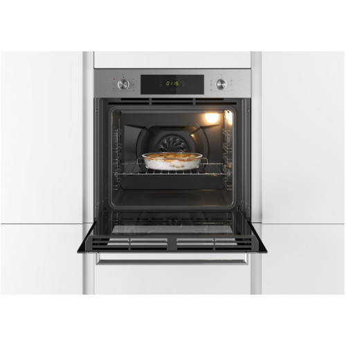 Характеристики: Общие данные: Габариты: 59.5x59.5x56.7 см Полезный объем: 68 л Гриль: есть Конвекция: есть Подсветка: лампа накаливания Самоочистка: паровая Aqua Activa Количество режимов работы: 6 Принадлежности: Решетка, Противень глубиной 35 мм Режимы: Освещение Гриль Нижний и верхний нагрев Нижний нагрев с конвекцией Нижний и верхний нагрев с конвекцией Cook Light Управление и функции: Сенсорный дисплей Часы Звуковой таймер Таймер отключения Отложенное начало приготовления Ручки управления Push-Pull Безопасность: Тангенциальное охлаждение Блокировка управления Автоматическое отключение при перегреве Кол-во стекол в дверке: 2 Дополнительная информация: Скрытый верхний нагревательный элемент Эмаль класса А Защита фронтальных панелей от отпечатков пальцев Плоская внутренняя поверхность дверцы Металлические направляющие Класс энергопотребления (нормы ЕС): A+ Класс энергопотребления (нормы РФ): A Энергопотребление в традиционном режиме (кВт/ч): 0,87 Энергопотребление в конвекционном режиме (кВт/ч): 0,68 Мощность подключения (кВт): 2,1 Основные характеристики: Габариты духовки (ВхШхГ) (см) 59.5x59.5x56.7 Тип духовки независимая Объем духовки (л) 68 Количество режимов работы 6 Автоматические программы Конвекция Гриль Вертел Термощуп Встроенная СВЧ Встроенная пароварка Текстовый дисплей Таймер Часы Тип управления поворотные переключатели + сенсорный Утапливаемые регуляторы Защита от детей Открытие дверцы откидная Направляющие для противней металлические Очистка духовки паровая Количество стекол духовки 2 Цвет нержавеющая сталь (серебро) Класс энергопотребления A Общая мощность (Вт) 2100 Гарантия 1 год Страна-производитель Турция