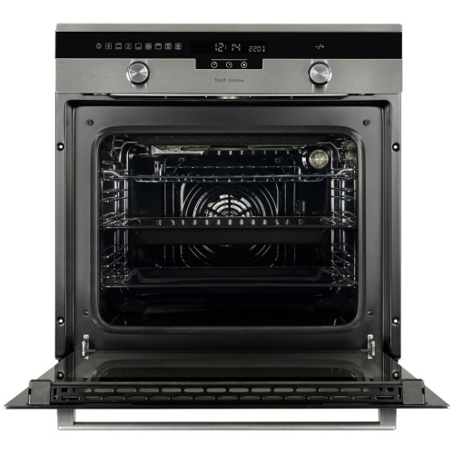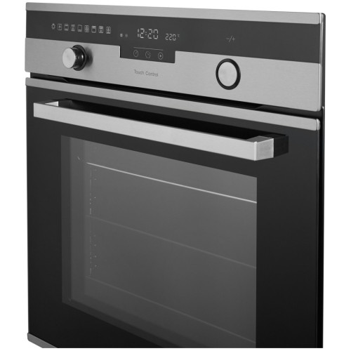 Духовой шкаф оснащён современным дисплеем с белой индикацией и расширенной панелью иконок. Тройное остекление дверцы и наличие сразу 2 противней разной глубины делают это устройство ещё более удобным и практичным. Управление, реализованное сочетанием чувствительного сенсорного блока и утапливаемых рукояток PIPO, дополняет богатый функционал, представленный сразу 9 режимами. Благодаря технологии SMART MENU с визуальным отображением выбранной программы приготовления, духовой шкаф сам подбирает необходимую для каждого режима температуру. Уровень нагрева можно менять с шагом в 5 градусов прямо в процессе работы устройства. Духовой шкаф имеет 9 функций, предлагающих самые необходимые и наиболее востребованные режимы: верхний и нижний нагрев, верхний и нижний нагрев с конвектором, нижний нагрев, кольцевой нагрев, нижний нагрев, двойной гриль, двойной гриль с конвекцией, режим освещения духовки и режим размораживания. Тройное стекло дверцы обеспечивает безопасность и термозащиту. Фронтальная сторона духового шкафа никогда не нагревается до опасной температуры. Съёмные стёкла дверцы делают процесс очистки духовки гораздо более удобным и простым: достаточно разобрать дверцу, чтобы очистить все труднодоступные места. Утапливаемые рукоятки PIPO — это эффективная защита элементов управления от случайных переключений и жировых испарений, а также удобство при работе с духовым шкафом, дополняющее его технологическое совершенство. Гидролизная очистка — особая технология, которая позволяет очистить устройство быстро и просто: достаточно добавить небольшое количество воды, и духовой шкаф сам отпарит все загрязнения, используя эффект сауны, после чего останется лишь провести по стенкам мягкой губкой, собрав загрязнения и удалив их одним движением. Эмаль SMART CLEAN, изготовленная и нанесённая с применением ряда инновационных технологий, препятствует накоплению жира, запаха и загрязнений. Панель управления, выполненная из закалённого стекла, станет финальным штрихом в совершенстве великолепного дизайна этой модели. Объём 58 литров позволяет разместить весь необходимый объём пищи, а также профессионально работать на нескольких уровнях одновременно. Класс энергопотребления А гарантирует, что устройство будет работать эффективно, не расходуя больше электричества, чем необходимо.