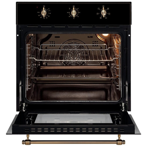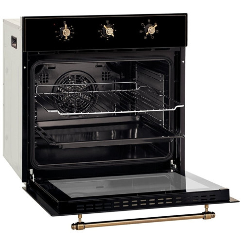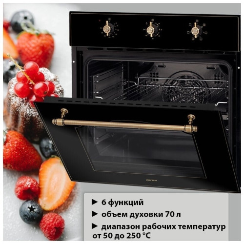 Встраиваемый электрический духовой шкаф AVEX HM 6060 1BR выполнен в ретро дизайне, поэтому станет изысканным дополнением на вашей кухне в классическом стиле. Духовой шкаф, общим объемом 70 л, имеет 6 программ приготовления и механический таймер, который настраивается до 90 минут и обеспечивает работу духовки на протяжении установленного времени. Духовой шкаф отключается и издает звуковой сигнал по истечению заданного времени готовки. Кольцевой нагревательный элемент, расположенный на задней стенке внутри камеры, способствует равномерному распространению жара по всему пространству духовки. Максимальная температура нагревания 250 °С, ее можно регулировать с помощью металлических поворотных регуляторов, выполненных в стиле ретро. Встроенная функция «Гриль» представлена дополнительным нагревательным элементом, который создает высокую температуру и блюда получаются сочными внутри и с хрустящей корочкой. Камера духовки оснащена внутренней подсветкой и охлаждающим вентилятором, который предохраняет шкаф от перегрева. 5-ти уровневые хромированные направляющие в духовом шкафу позволяют легко выдвигать противень и решетки за пределы духовки. В комплекте идут один противень и одна решетка. Духовой шкаф AVEX HM 6060 1ВR оснащен функцией самоочистки. Каталитические пластины внутри духового шкафа расщепляют жир и загрязнения во время приготовления при температуре от 150 градусов. Это обеспечивает легкий уход за внутренним покрытием. Дверца духового шкафа выполнена из двойного закаленного стекла, оно отличается жароустойчивостью и надежностью в эксплуатации. Модель выполнена в бежевом цвете. Стильный, технологичный и надежный духовой шкаф AVEX HM 6060 1BR – оптимальное решение для Вашей кухни!