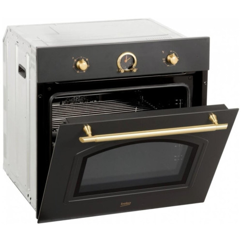 Духовой шкаф Beko ORE27205AВстраиваемый духовой шкаф черного цвета в стиле рустик дополнит элегантный интерьер вашей кухни. Духовка имеет 6 режимов приготовления и удобное управление, а также функцию Booster для быстрого разогрева. Удобные телескопические направляющие помогают легко и безопасно вынимать противень из горячей духовки.Безопасное использованиеБез ожогов и перегревания. Дополнительную безопасность для вас и ваших близких обеспечит конструкция дверцы, в которой встроено 3 стекла. Внешнее всегда будет оставаться слегка теплым, поэтому никто из ваших домочадцев случайно не обожжется, дотронувшись до духового шкафа. Кроме того, в нем присутствует блокировка от случайного нажатия и функция принудительного охлаждения. Специальный вентилятор в конструкции шкафа не дает ему перегреться, а также препятствует нагреву мебели.Функция BoosterБыстрый разогрев. Вы всегда готовы к приходу гостей. Чтобы поставить в духовой шкаф кексы, лазанью или любое другое блюдо, которым вы хотите удивить близких, вам не нужно долго ждать, пока духовой шкаф нагреется. Используйте функцию быстрого разогрева Booster, и успех будет вам обеспечен.