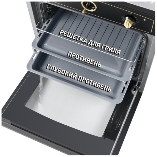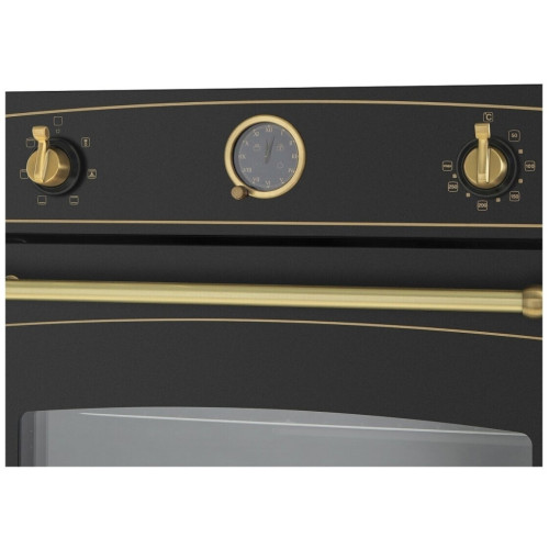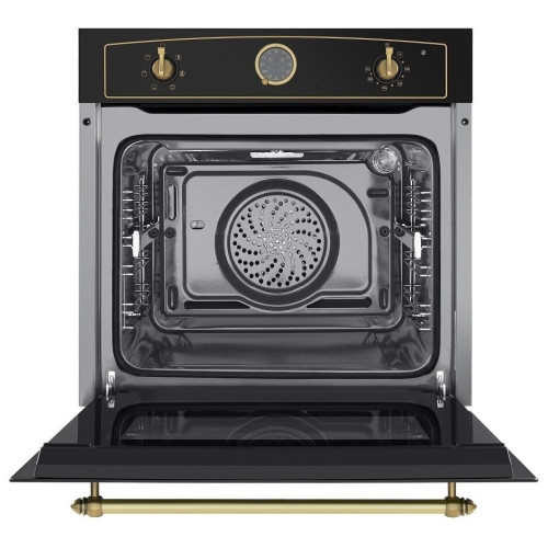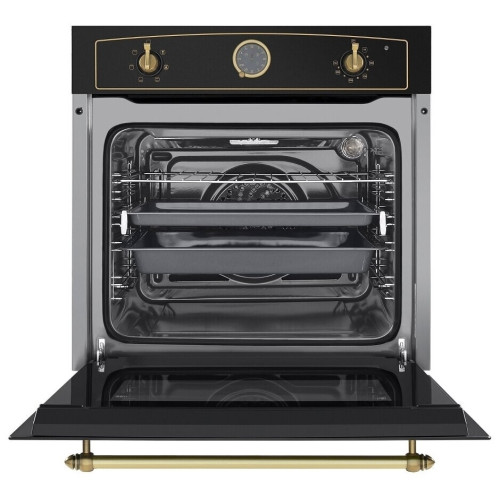 Незначительно потребление электроэнергии, эмаль легкой очистки, высококачественные материалы изготовления – это лишь малая часть причин ради которых стоит духовой шкаф MAUNFELD MEOFE 676RBG TM. Вместе с этим можно выделить и более, чем полезные функции: верхний и нижний нагрев, конвекция, гриль, размораживание, холодный фронт и внутреннее освещение, позволяющее держать под контролем весь процесс приготовления блюда. Также невозможно не уделить внимание и уникальному дизайну устройства, придающему любой кухне более стильного вида и даже некой оригинальности. Независимый тип установки, класс энергопотребления А, 7 основных режимов, аналоговый таймер, съемная дверца, панорамное внутреннее стекло дверцы Smatr Eye, плавное закрытие дверцы, холодный фронт, эмаль легкой очистки, объем 67 л. 1. Функция размораживания 2. Функция верхнего и нижнего нагрева/традиционный режим приготовления 3. Функция конвекции с верхним и нижним нагревом/интенсивная выпечка 4. Функция конвекции с нижним нагревом 5. Функция Гриль 6. Функция Гриль с конвекцией 7. Внутренний свет/освещение Комплектация: Один стандартный поддон Один глубокий поддон Одна решетка Стеклянный протвень из жаропрочного стекла SHOTT(Германия) - в опции Хромированные боковые направляющие Телескопические направляющие Тройное стекло дверцы, доводчик дверцы, цельнометаллические полнотелые рустикальные ручки управления и дверцы духовки (фурнитура - матовое золото) Цвет Черный Ширина 600 мм Тип управления Механическое Объем 67 л Тип электрическая независимая духовка Функции 7