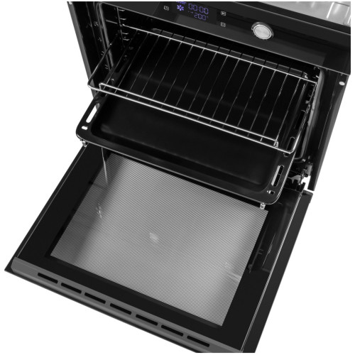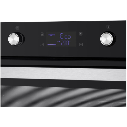 Электрический духовой шкаф Maunfeld AEOH.749B объемом 74 л способен готовить на пяти уровнях одновременно. Компактные размеры позволяют встроить его в стандартную нишу кухонной техники. Два ТЭНа — верхний и нижний — в комбинации с грилем предусматривают девять режимов приготовления. Об истечении заданного времени оповестит звуковой сигнал таймера, после чего духовка автоматически отключится. Встроенный конвектор обеспечивает постоянную циркуляцию горячего воздуха во внутреннем пространстве, за счет чего происходит равномерное прогревание продукта и экономия электроэнергии. Для снижения энергозатрат предусмотрен режим Eco, при котором прибор отключается за несколько минут до окончания готовки. Для настройки параметров предусмотрены поворотные элементы, которые утапливаются в панель управления для защиты от случайного переключения. На сенсорном дисплее с белой подсветкой отображается информация о текущем состоянии духовки. Фронтальная панель выполнена из двухслойного жаропрочного стекла, которое не нагревается во время работы и исключает случайные ожоги. Внутренние стенки камеры покрыты черной защитной эмалью легкой очистки. Наблюдать за ходом кулинарного процесса поможет яркая подсветка камеры.