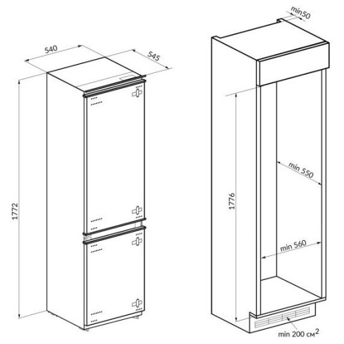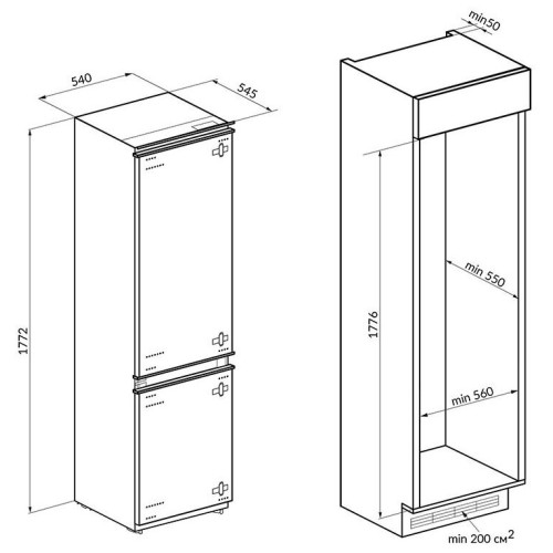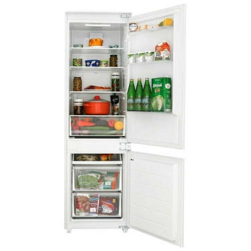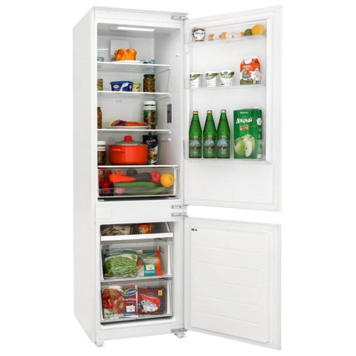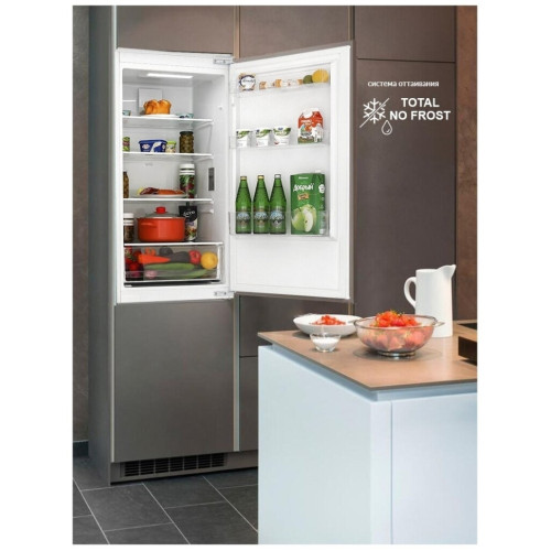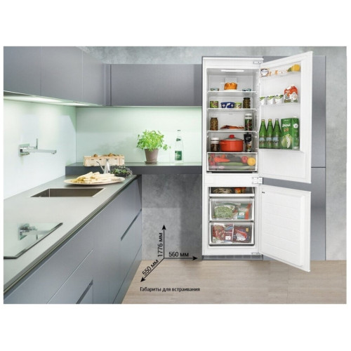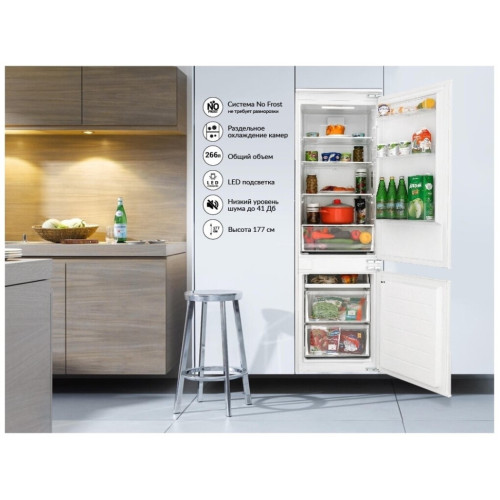 Тип Комби Расположение Встраиваемый Общий объем 266 л Полезный объем холодильной камеры 185 л Полезный объем морозильной камеры 65 л Класс энергопотребления A+ Энергопотребление 283 кВт/год Климатический класс N-SN-T Количество компрессоров 1 Хладагент R600a (43 г) Система оттаивания TOTAL No Frost (автоматическая) Управление Электронное Материал полок Закаленное стекло Уровень шума 41 дБ Режим «Быстрое охлаждение» Есть, до 2 °С Режим «Суперзаморозка» Есть, при -24 °С LED подсветка в холодильной камеры Есть Диапазон температуры в холодильной камере От +2 до +8 °C Диапазон температуры в морозильной камере От -16 до -24 °C Мощность замораживания 3,5 кг/cутки Автономное сохранение холода до 12 часов Возможность перевешивания двери Нет Размер (ШхГхВ) 54х54.5х177.2 см Высота 177.2 см Размер ниши для встраивания (ШхГхВ) 56 х 55 х 177.6 см Вес 56.6 кг Цвет Белый Гарантийный срок 2 года Страна производитель Китай Производитель HIBERG